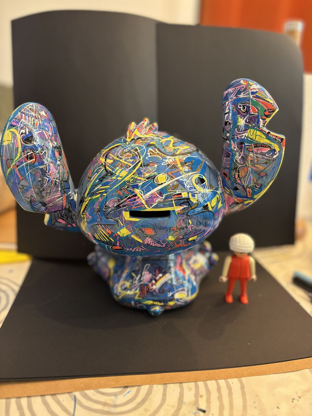 Format Pop xxl ancienne tirelire recyclée en œuvre d’art