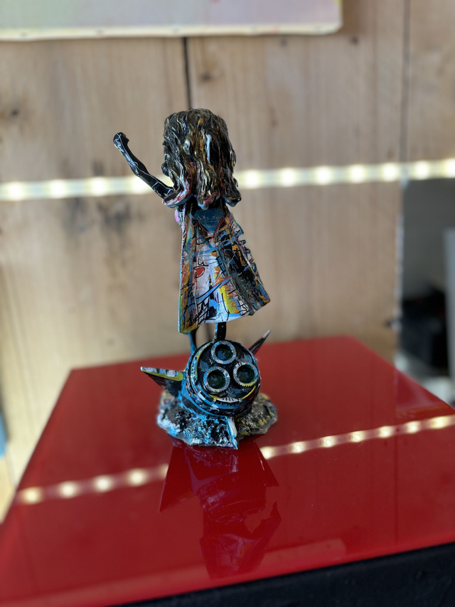 Jouet figurine recyclée par l’art signé par LM Art Honfleur artiste Lancelin Mireille